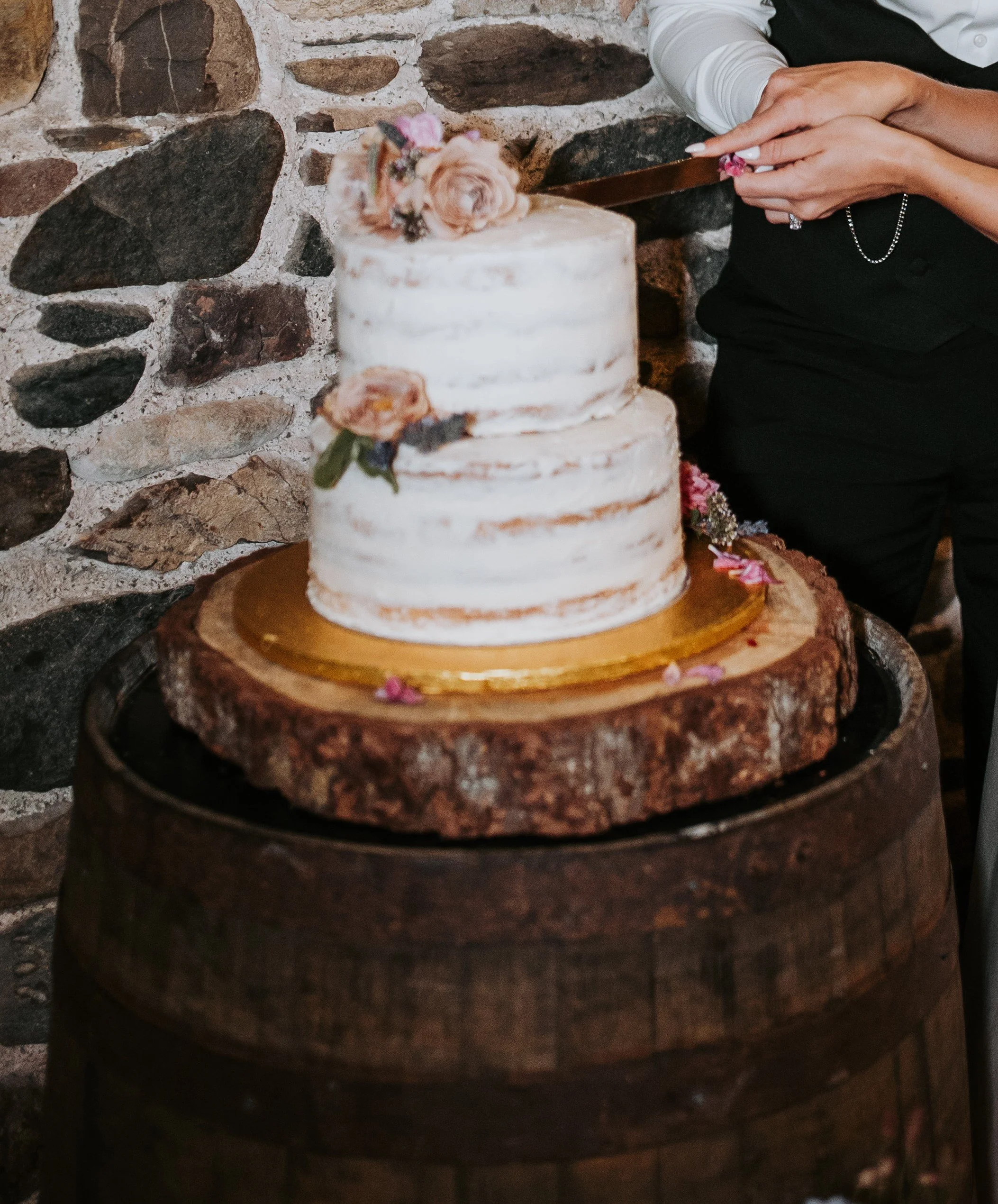 Vintage whisky barrel with beautiful aged wood tones. Ideal for use as a cake table, floral display, or drinks station. A timeless accent with rustic charm. 1 available.